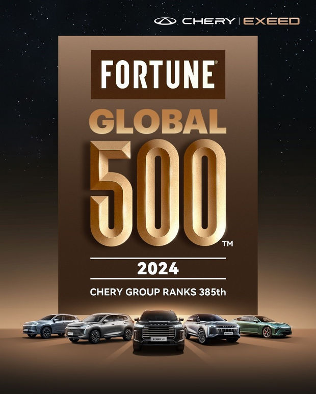 شرکت چری توانست طی یک موفقیت چشمگیر با کسب رتبه 385 در لیست 500 شرکت برتر جهان که بهصورت سالیانه توسط مجله معتبر فرچون (Fortune) منتشر میشود، قرار بگیرد. این نقطه عطف میتواند یک دستاورد مهم برای شرکتی باشد که سفر خود را 27 سال پیش از یک خانه کوچک آغاز کرد. امروزه چری با حضور در بیش از 80 کشور به یک برند خودروسازی جهانی تبدیل شده است و به 14.2 میلیون کاربر در سراسر جهان خدمات ارائه میدهد.