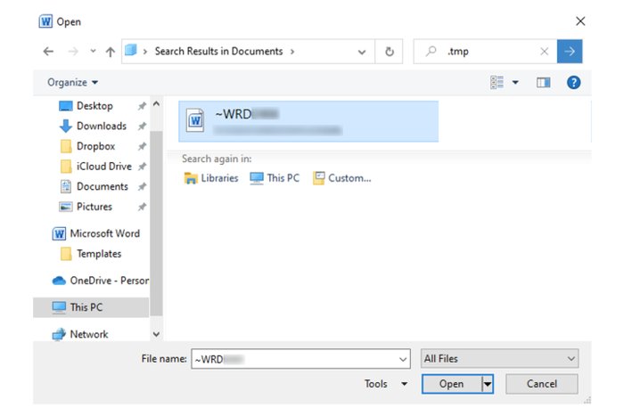 پیدا کردن اسناد ذخیره نشده Word در فایلهای موقت