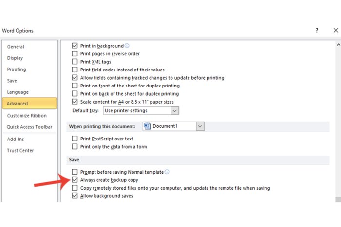 مرحله ۲: همانطور که در بالا توضیح دادیم گزینه Backup copy را فعال کنید. برای این کار، به ترتیب وارد File> More> Options> Advanced شوید و سپس کادر کنار گزینه Always create backup copy را علامت بزنید. بازیابی اسناد در ورد نسبتا ساده است، اما ممکن است شما را از استفاده از این نرمافزار دلسرد کند. هنگام انتخاب بین Microsoft Word و Google Docs این نکته را نیز در نظر بگیرید.