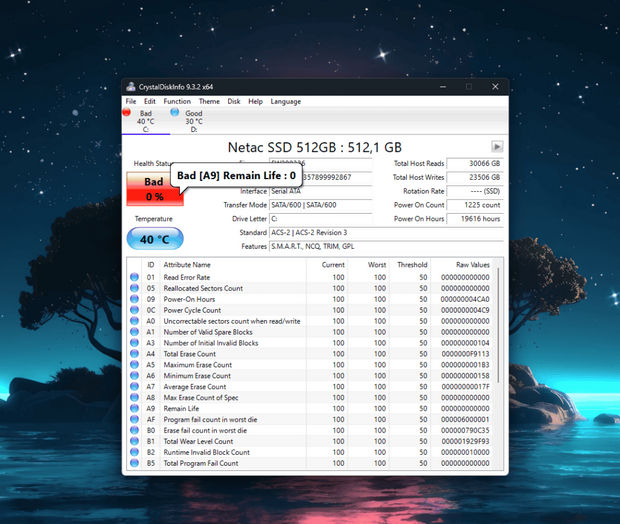 - Total Host Writes: این نشان میدهد چقدر داده و اطلاعات روی SSD شما نوشته شده است.
