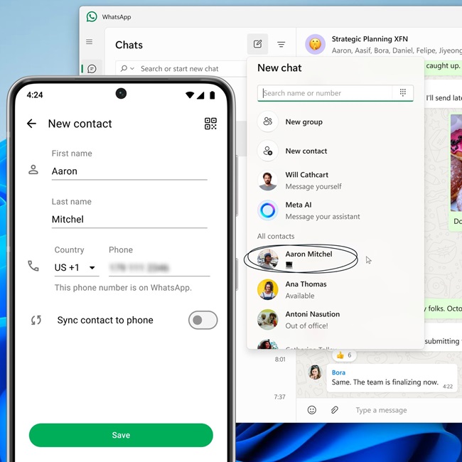 در گذشته، کاربران واتساپ تنها میتوانستند از طریق گوشی های موبایل خود و با وارد کردن شماره تلفن یا اسکن کد QR مخاطب جدید اضافه کنند. اما اکنون واتساپ اعلام کرده که این امکان فراهم خواهد شد تا مخاطبین خود را مستقیما از طریق نسخه وب واتساپ و برنامه ویندوز مدیریت کنید. این تغییرات به کاربران اجازه میدهد بدون نیاز به استفاده از موبایل، از هر دستگاهی که به واتساپ متصل است، مخاطبین خود را اضافه و مدیریت کنند. همچنین واتساپ اعلام کرده که این قابلیت به زودی به دیگر دستگاههای لینک شده نیز گسترش خواهد یافت.