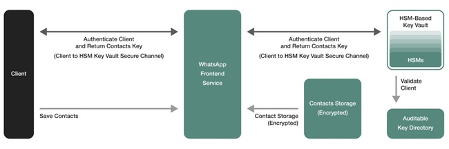 اطلاعات مخاطبین در واتساپ به صورت رمزگذاری شده ذخیره میشود و از طریق سیستم IPLS محافظت میگردد تا حریم خصوصی کاربران حفظ شود. واتساپ برای اطمینان از امنیت این سیستم، با شرکت Cloudflare همکاری کرده تا فرآیندهای رمزنگاری IPLS توسط یک نهاد مستقل بررسی و تأیید شوند. این بررسیها تضمین میکند که لیست مخاطبین به صورت امن مدیریت شده و از دسترسی غیرمجاز محافظت میشود.