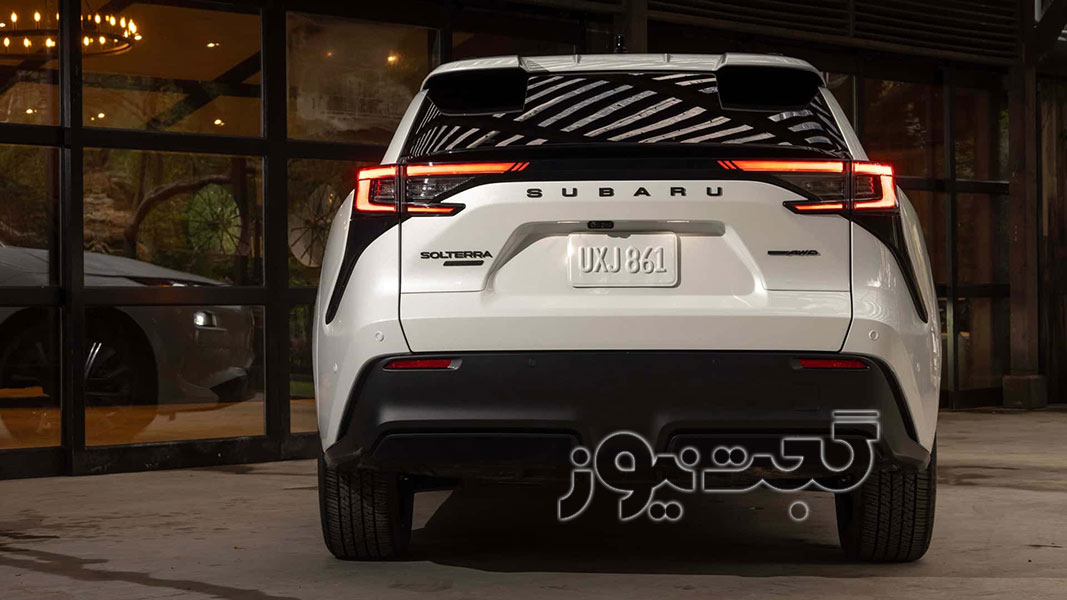 در نمای عقب، تنها تغییر قابل توجه، جایگزینی لوگوی شش ستاره سوبارو با نوشته SUBARU بین چراغهای عقب است. اسپویلر سقفی جذاب مدل قبلی همچنان حفظ شده است. با وجود تلاش برای بهبود ظاهر، متن منبع اشاره میکند که طراحی خودرو برقی سولترا آخرین مدل ممکن است همچنان در برخی بخشها، مانند ناحیه زیر چراغهای جلو، کمی عجیب به نظر برسد، هرچند که از شدت تهاجمی بودن آن کاسته شده است.
