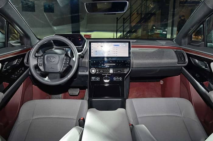 با ورود به کابین تویوتا bZ4X 615 Max، انسجام و هارمونی نمای بیرونی به ذهن یادآوری میشود. المانهای به روز و عناصر آینده نگرانه به وضوح خودنمایی میکنند و اصالت خودروهای برند تویوتا را به رخ میکشند. هدف از طراحی کابین این کراس اوور، سادگی و در دسترس بودن امکانات بوده و در عین حال همین سادگی به جذابیت کابین کمک کرده است.