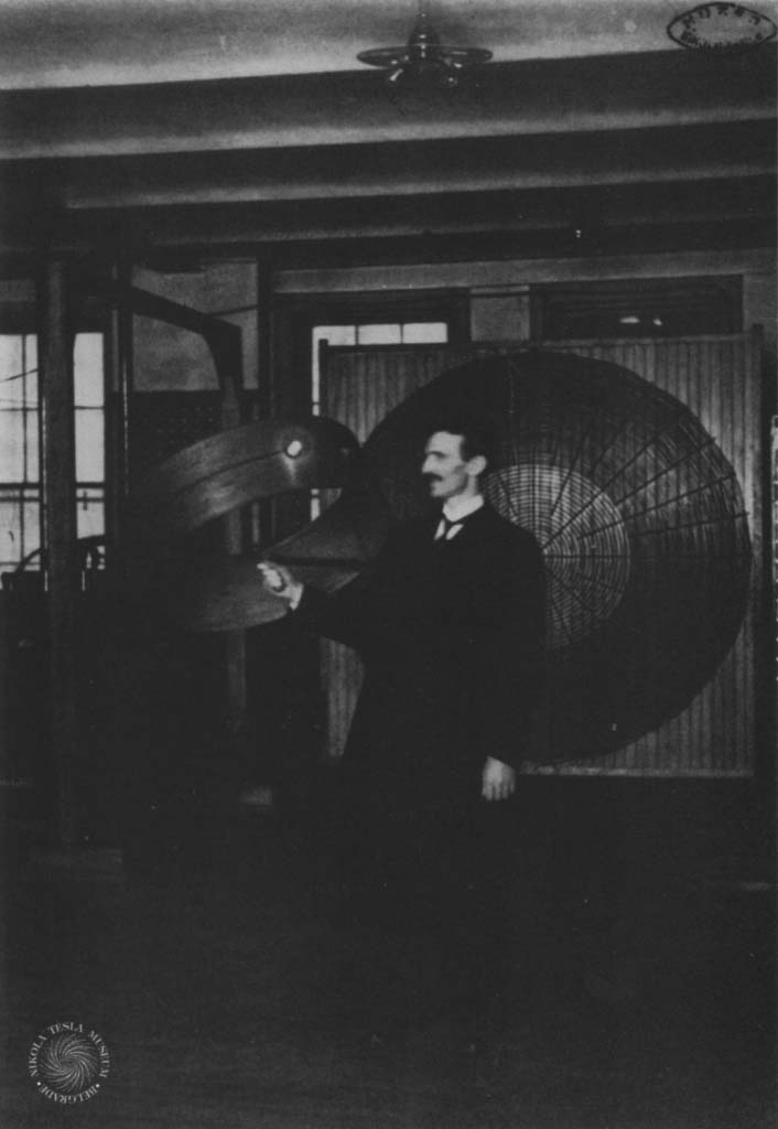 ۶. تسلا با یکی از اختراعاتش در سال ۱۹۱۶